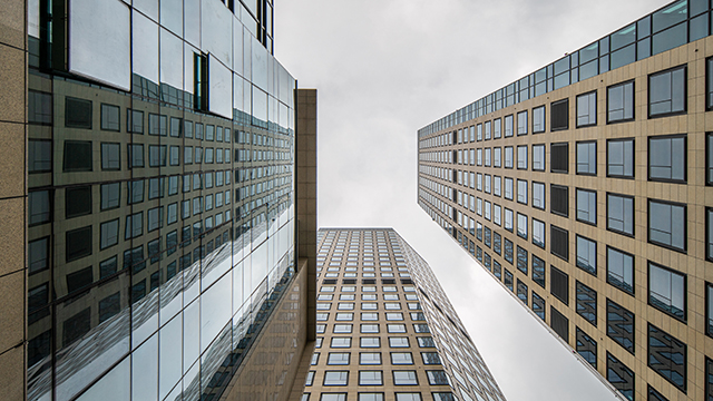 項(xiàng)目主要包括四棟辦公樓、裙房及中間圍合而成的廣場。