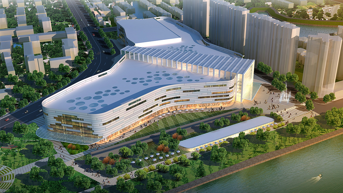 在平面布置上,淄博SM采用了SM城市廣場一貫使用的典型美式商業(yè)Mall的布局,以一條商業(yè)內(nèi)街和大型中庭為主軸貫穿整個建筑。沿商業(yè)街布置垂直交通體系來組織人流,和絕大多數(shù)美式商業(yè)Mall一樣采用天光,使內(nèi)街在全中央空調(diào)的環(huán)境里能享受到自然光。在淄博項目上,總平布局和商業(yè)內(nèi)街的設(shè)計打破了以往貫用的直線手法,而采用流線處理,使整個建筑內(nèi)外空間都充滿了活力。由于是一棟多層建筑,從高處俯視淄博SM城市廣場,建筑物就如一只在飛翔的海鷗。