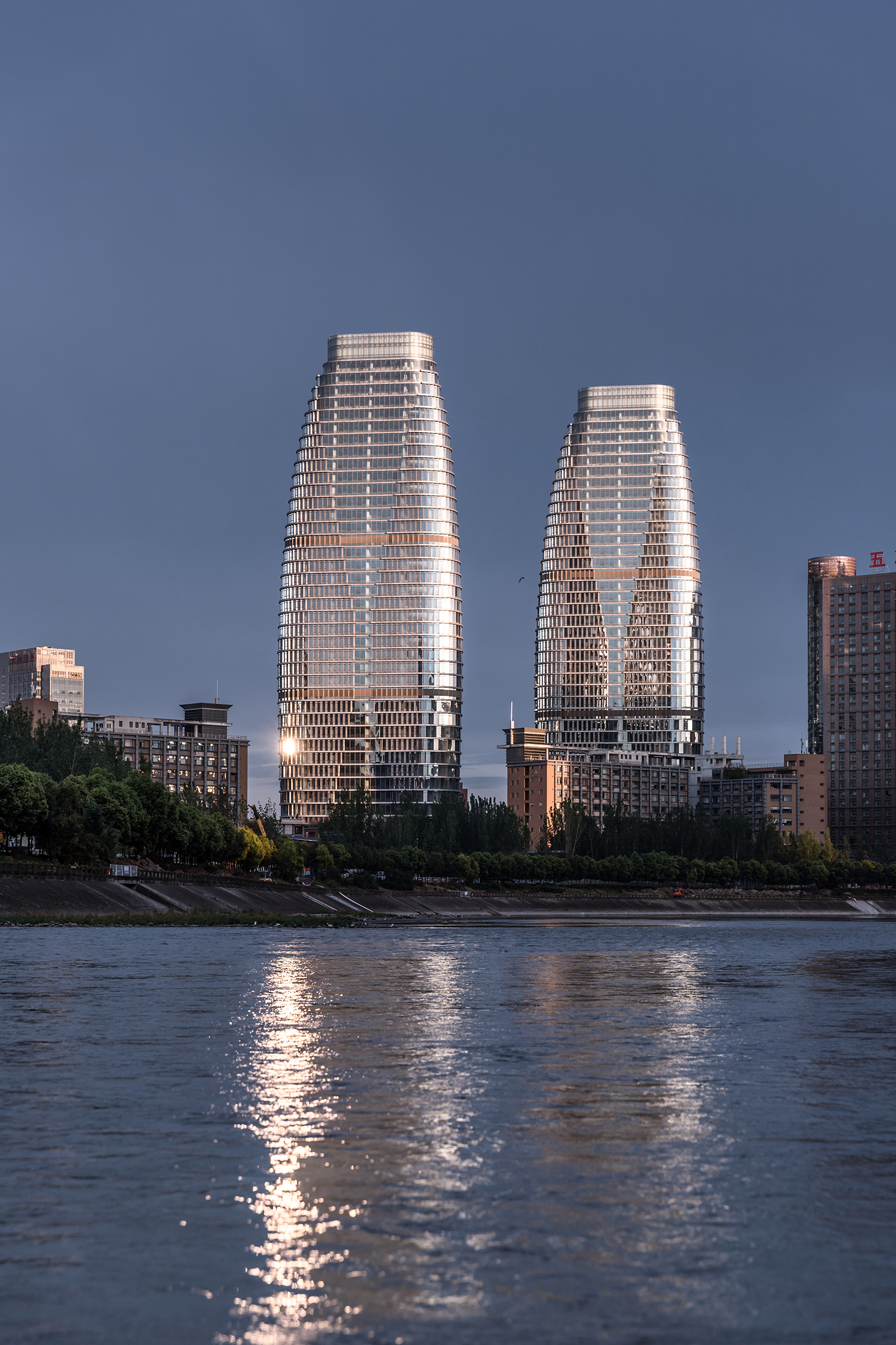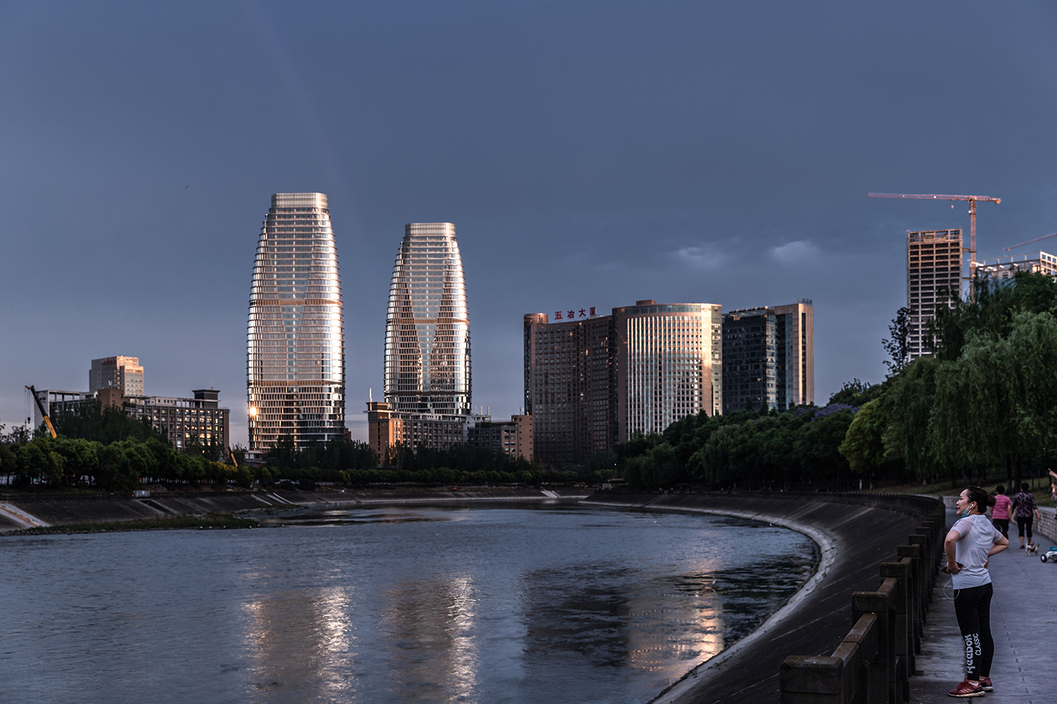 項(xiàng)目位于成都高新南區(qū),美麗的錦江河畔,兩棟塔樓分別作為新華文軒和新華發(fā)行集團(tuán)的總部辦公樓。塔樓體量巨大,建筑高度42層達(dá)180米,設(shè)計(jì)以“書山”為形象創(chuàng)意出發(fā)點(diǎn),三角形平面布局爭(zhēng)取了最大的錦江景觀觀賞面。