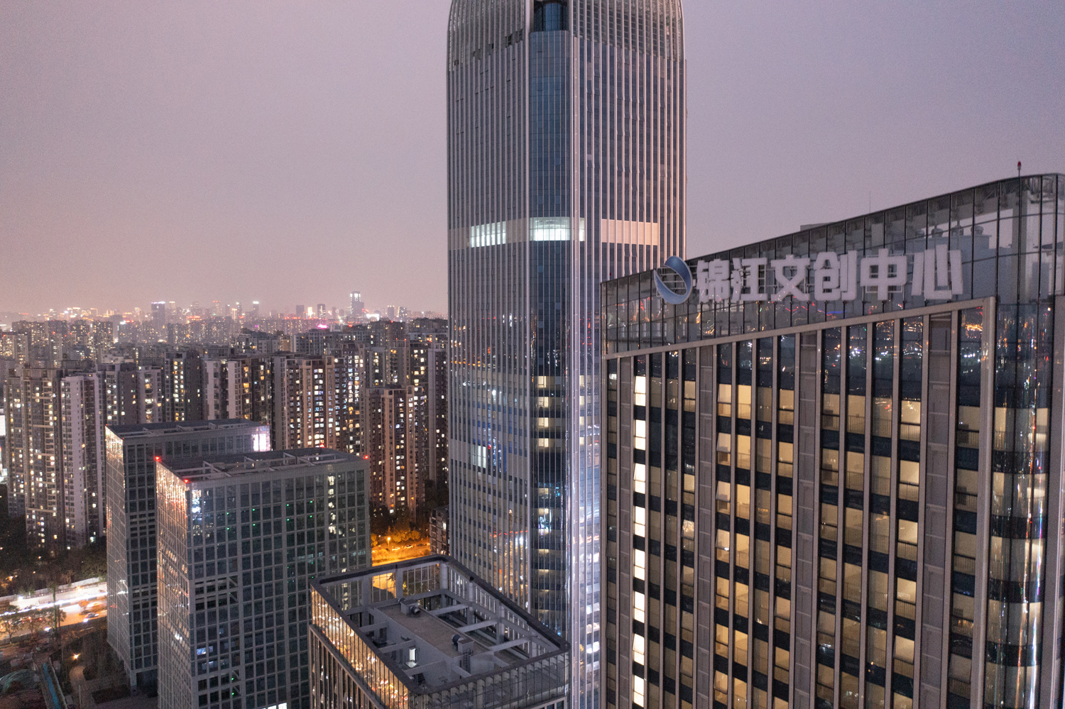 項目建設(shè)用地位于成都市三環(huán)外東南方,驛都大道與成龍大道之間的東部發(fā)展片區(qū)——成都重要的旅游休閑地塊三圣鄉(xiāng)片區(qū),隸屬于成都市錦江區(qū),用地性質(zhì)為商業(yè)服務(wù)業(yè)設(shè)施用地。項目用地位于錦江區(qū)東洪路以東、梔子街以南、喜樹街以西、成龍大道以北。場址地理位置優(yōu)越,交通便利,水、電、路、通訊等配套基礎(chǔ)設(shè)施較為齊全,建設(shè)條件齊備。項目包括超高層辦公和多層街區(qū),總建筑面積237,900平方米,其中地上184,192平方米,兩層地下室,超高層塔樓共計60層,建筑高度258.25米,多層街區(qū)包含媒體中心、展示中心和體驗中心等,共計4層,建筑高度20.65米。項目各個功能區(qū)通過立體連廊相互聯(lián)系,有效對接。