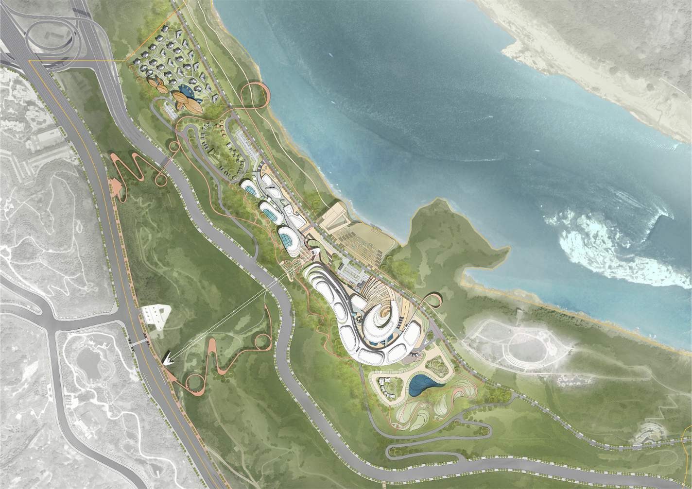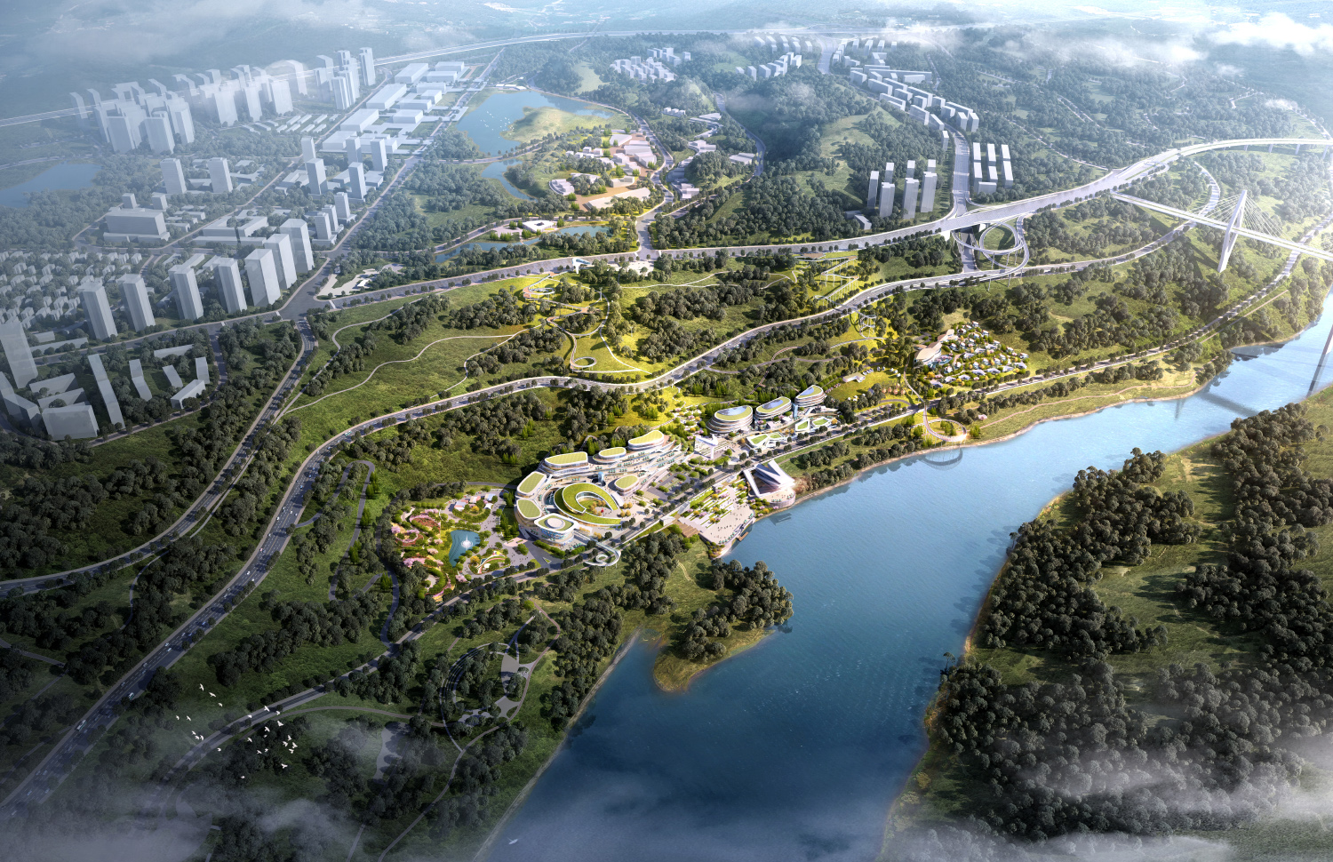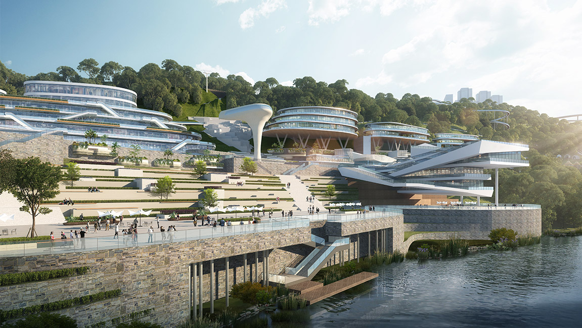 項(xiàng)目位于重慶兩江新區(qū),以兩江四岸為城市發(fā)展主軸,讓城市重回濱水,讓文化賦能生活。以生態(tài)復(fù)興、文化創(chuàng)新為驅(qū)動(dòng),邁向世界級(jí)城市的國(guó)家西部門戶。
