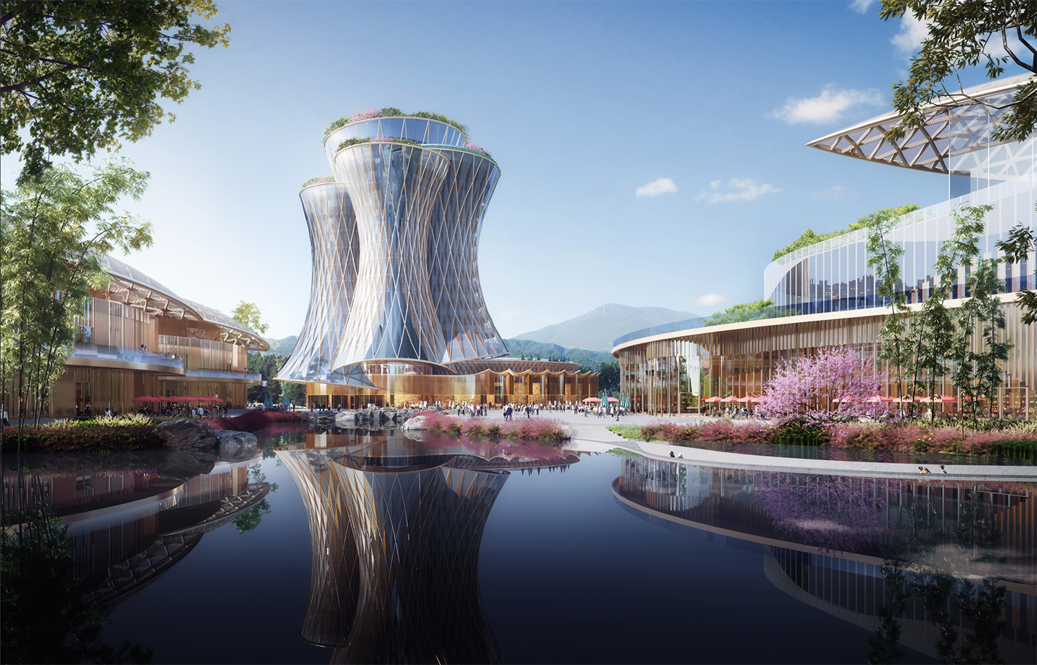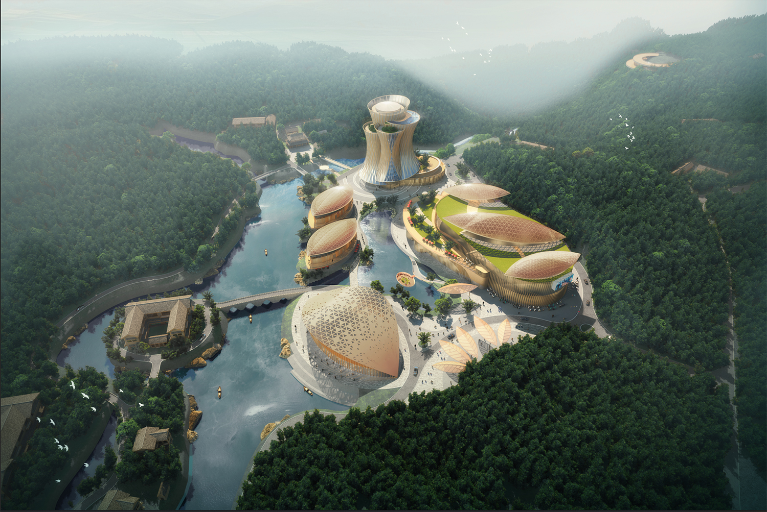項(xiàng)目主要包括花溪竹舞大地藝術(shù)走廊、風(fēng)林谷飛龍山莊、桐子坳竹藝村境、熊貓?jiān)分袢獔@、七彩絲竹小鎮(zhèn)文化中心、七彩廣場竹酒演藝市集、君悅奢野竹林別苑、集賢科創(chuàng)綠谷等八個(gè)部分。Cendes主要設(shè)計(jì)的是七彩廣場竹酒演藝市集、君悅奢野竹林別苑和集賢科創(chuàng)綠谷三個(gè)部分。