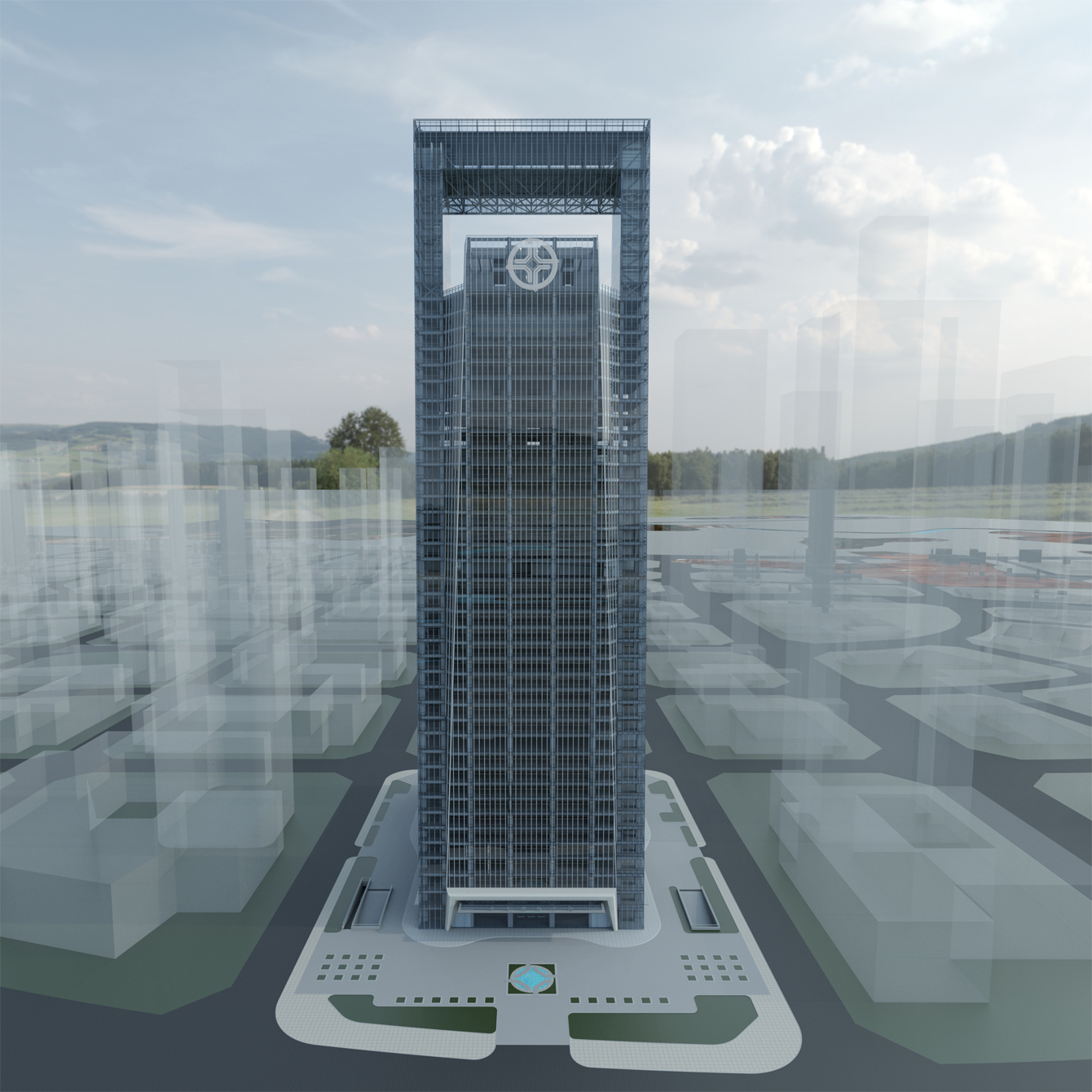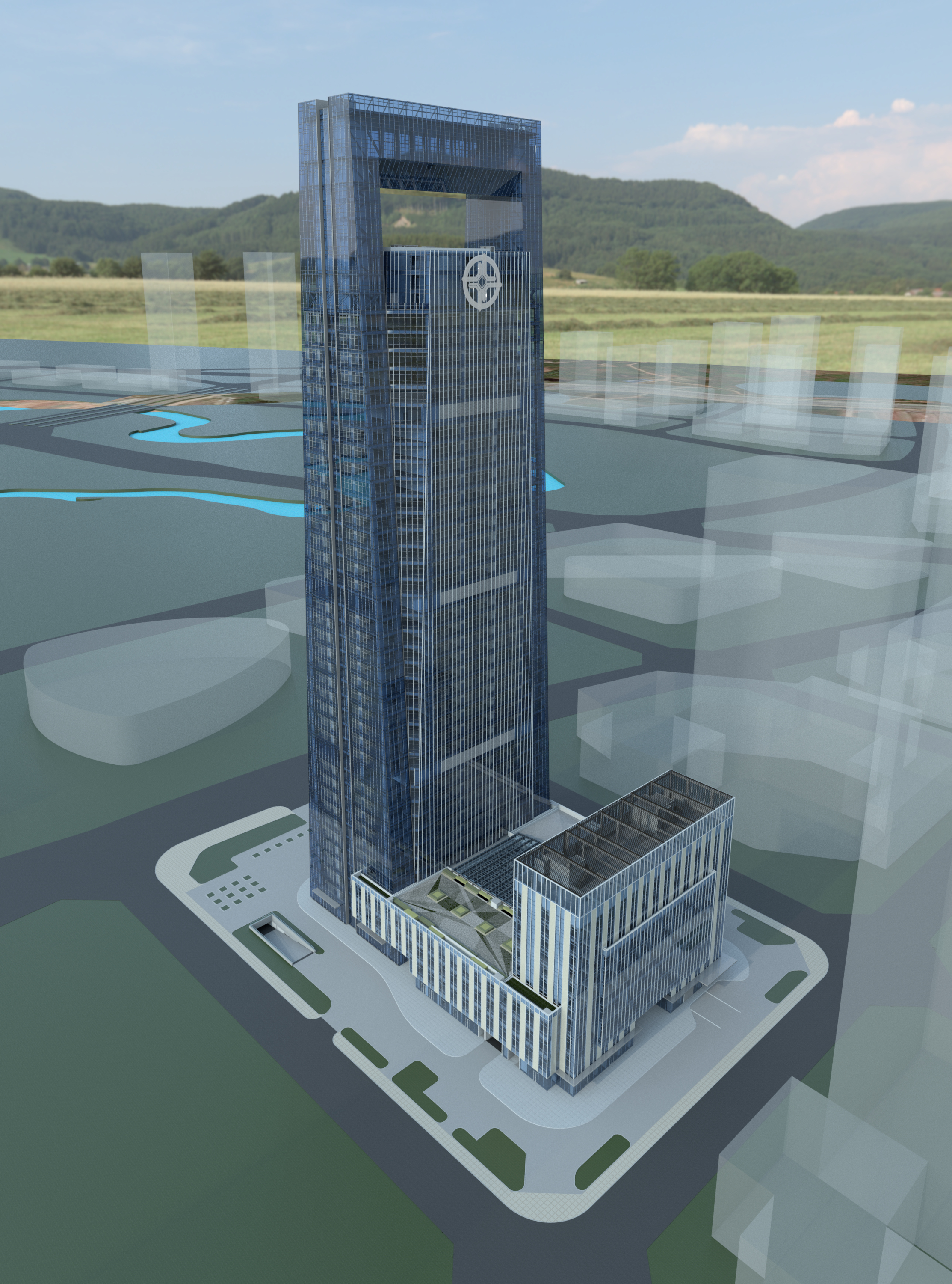 建筑頂部門架式觀光廊橋是項(xiàng)目的點(diǎn)睛之筆。建筑師通過對(duì)業(yè)主企業(yè)文化的理解和概括,抽象出最具代表性的建筑形體。門架造型隱喻“中交之門、天府之門的”精神內(nèi)涵,莊嚴(yán)的建筑形態(tài)體現(xiàn)“行天下、天下行”的國際化大企業(yè)氣質(zhì),傳達(dá)了四通八達(dá)的企業(yè)文化。