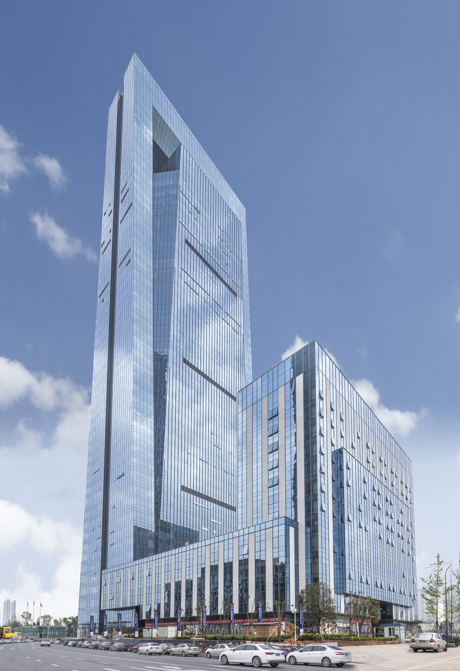 中交國際中心由一棟220M的超高層甲級(jí)辦公樓,一棟144個(gè)房間的商務(wù)精品酒店,4層定制型商業(yè)商務(wù)配套等建筑組成集合式綜合體。項(xiàng)目位于成都天府新區(qū)秦皇寺中央商務(wù)區(qū),緊鄰天府公園,占據(jù)區(qū)域最佳自然環(huán)境。高密度的城市中心,便利的交通,一線景觀資源,最佳城市展示面。諸多條件決定了項(xiàng)目具備了城市地標(biāo)的潛力。
