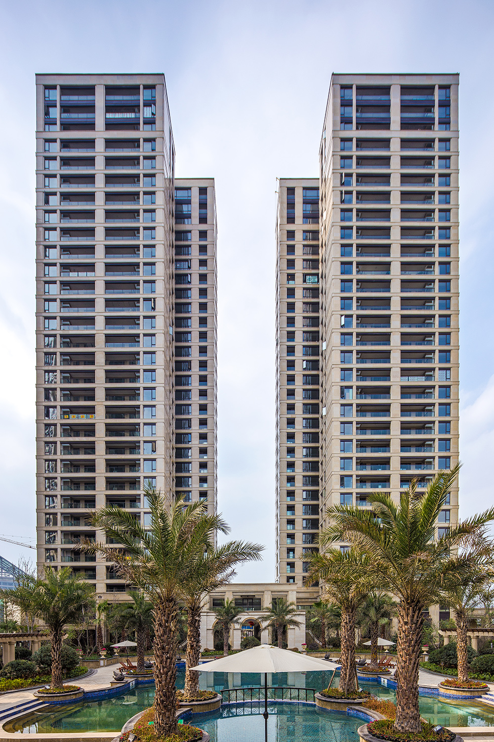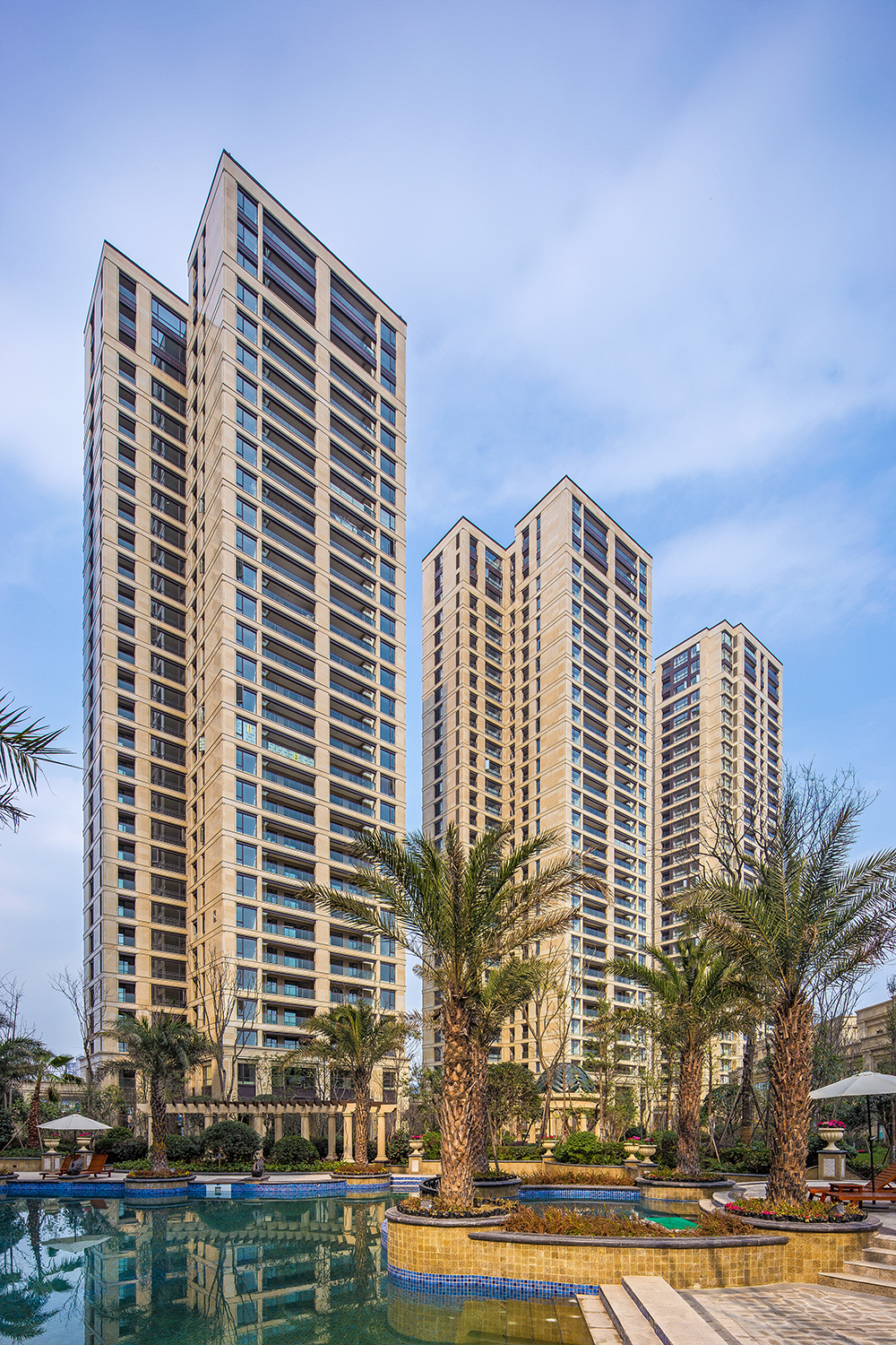 項(xiàng)目位于成都市南部新區(qū)石墻片區(qū),紅星路南延線西側(cè),東南臨錦江,西北側(cè)鄰近新益州城市公園。項(xiàng)目立面采用清新典雅的新古典主義風(fēng)格,強(qiáng)調(diào)橫向線條。高層住宅頂部三層采用整體通透的處理手法,底部采用厚重的體量處理手法,中段采用節(jié)制而生動的局部橫向線條,強(qiáng)化立面節(jié)奏和韻律,形成古典主義建筑經(jīng)典的三段式做法,突出新古典主義建筑的比例之美。建筑風(fēng)格在追求高尚住區(qū)的尊貴氣度的同時(shí)也兼顧與城市風(fēng)貌的契合。沿街商業(yè)采用大開間布局,并置形成城市街道界面的韻律感。建筑細(xì)部及材質(zhì)強(qiáng)調(diào)細(xì)部的比例協(xié)調(diào),近黃金比例的洞口尺度,配以柱式和線腳的點(diǎn)綴與裝飾,在近人尺度上增加了建筑的豐富性。