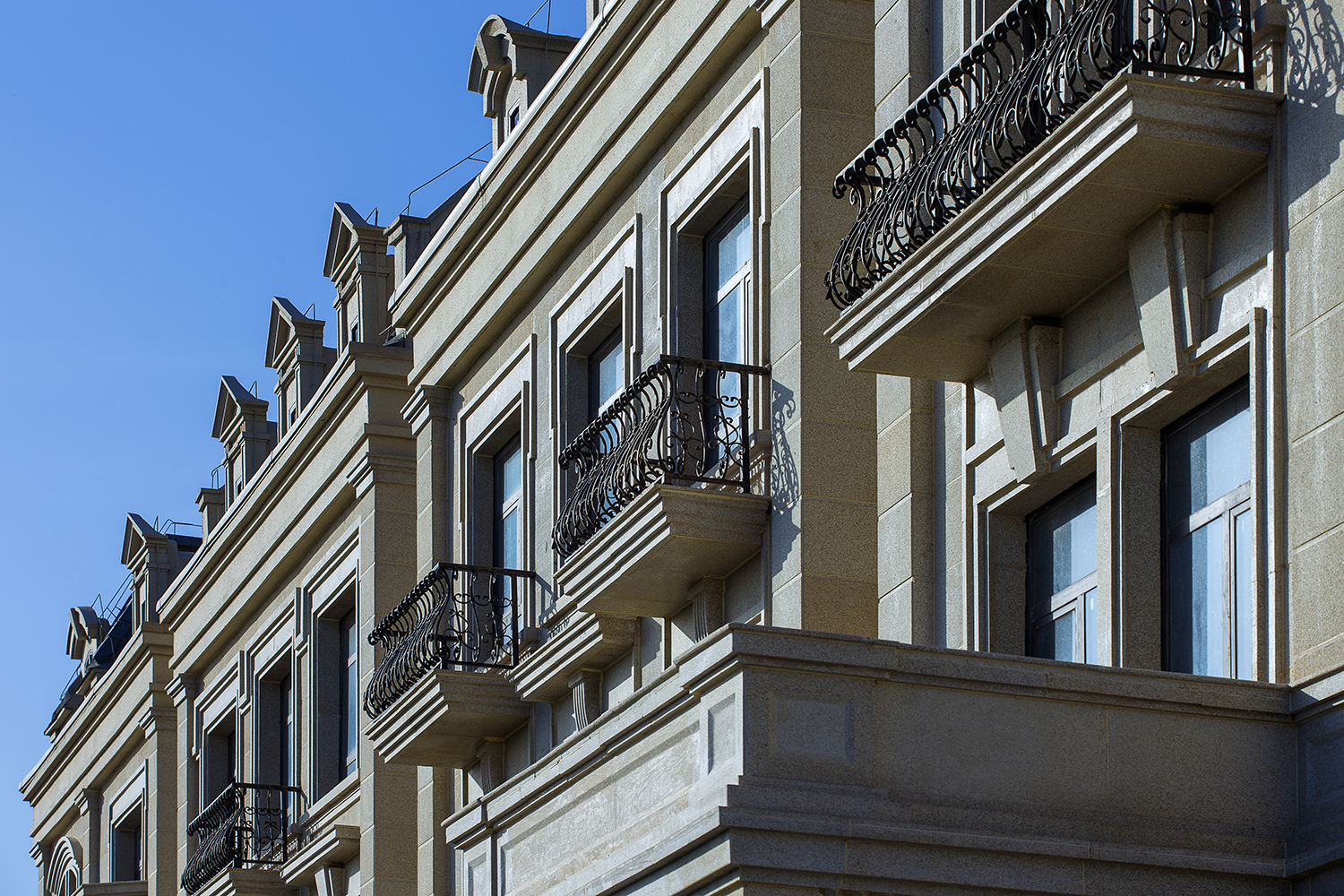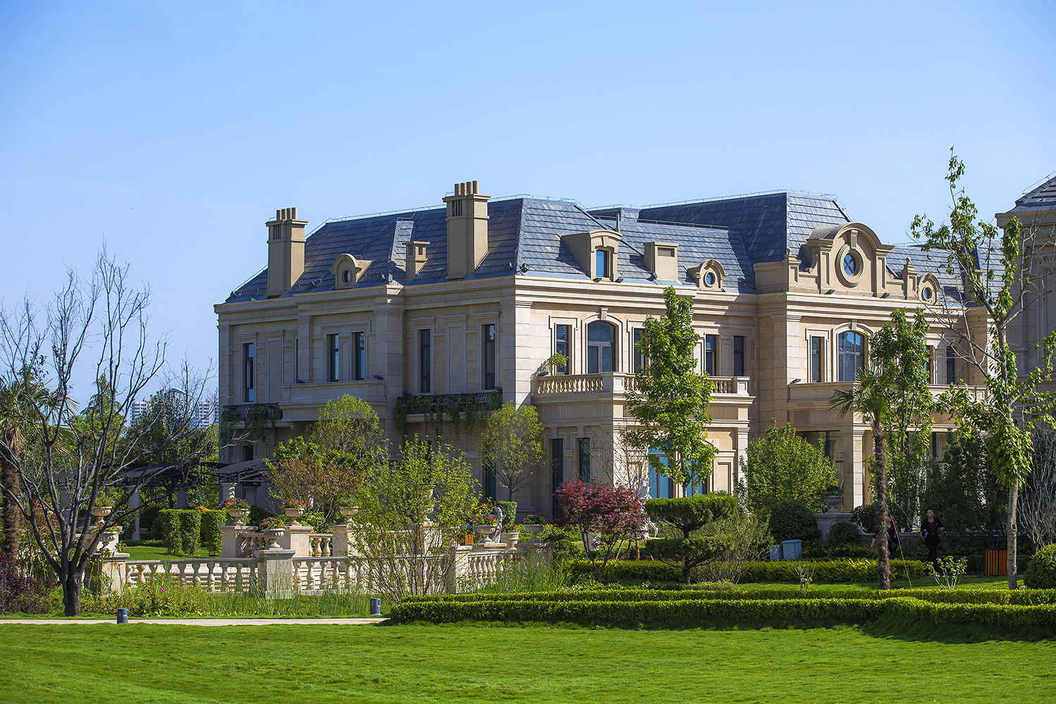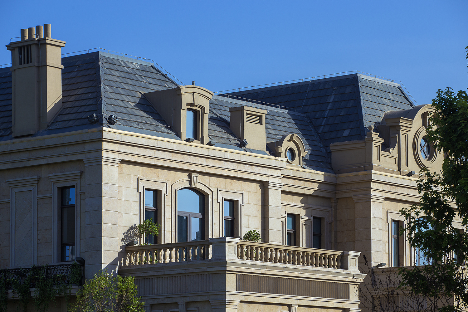 聯(lián)排式住宅有濃郁的西方古典風(fēng)格,設(shè)計(jì)通過(guò)巧妙的合院式組合,使得每戶都有充足的陽(yáng)光及私家庭院。外墻采用干掛石材飾面,斜屋面為藍(lán)灰色波形瓦,點(diǎn)綴小區(qū)的尖塔,其浪漫氣息彰顯了樓盤(pán)與目標(biāo)客戶的品質(zhì)。