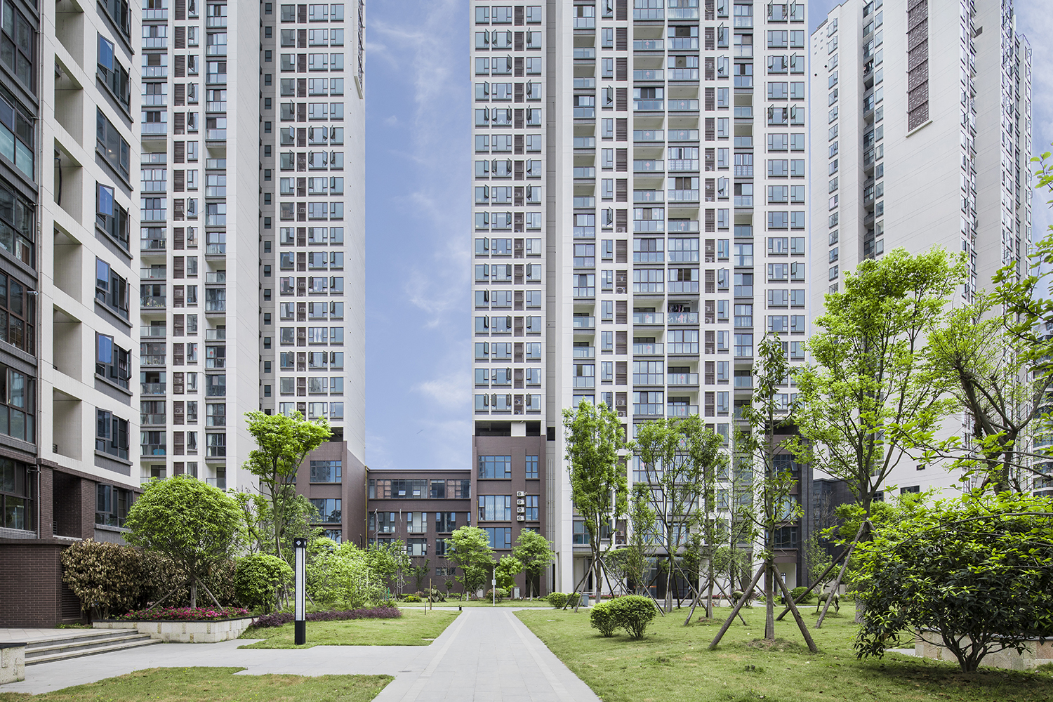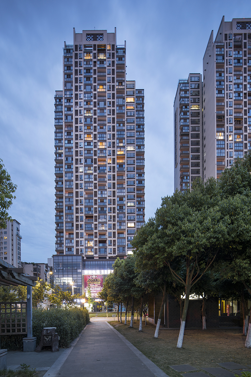 項目位于德陽市經(jīng)濟技術(shù)開發(fā)區(qū)中心地段,屬于德陽市重點發(fā)展區(qū)域。項目西側(cè)緊鄰市政南湖公園景觀朝向極佳,北側(cè)和西側(cè)分別為天上南路和峨眉山路,交通便利,區(qū)域優(yōu)勢明顯。沿用地西側(cè)南湖公園設置城市商業(yè)及100米點式高端住宅,濱水公園、江景一覽無余,便于人流的引入及城市形象的塑造。場地中心區(qū)域點式、板式高層延續(xù)一期的半圍合布局,更注重空間的通透性,形成多個大尺度中心庭院。
