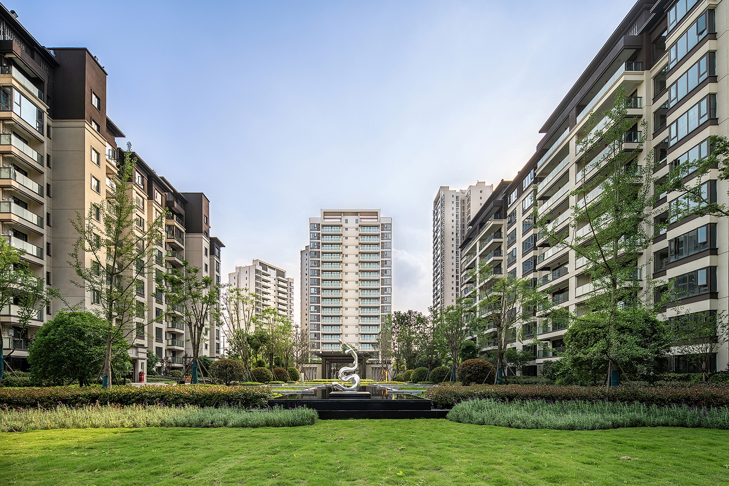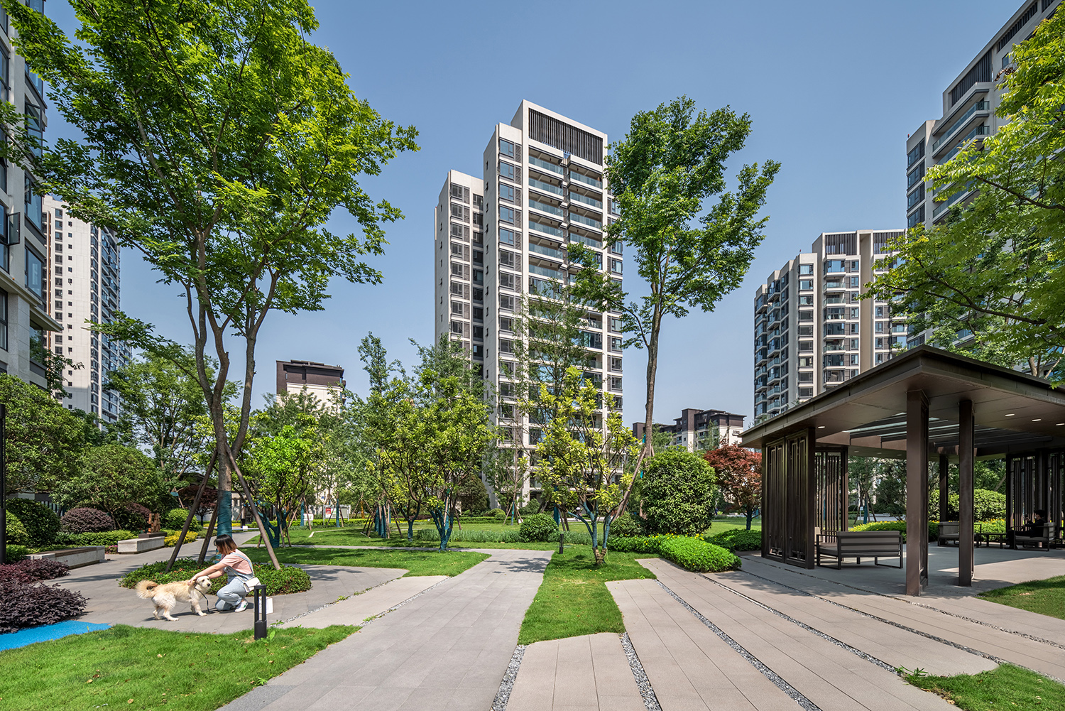 格柵、光影、留白為社區(qū)平添了迷人的靜謐之感。項目不僅充分考慮與城市外部空間環(huán)境的融合,也非常注重內(nèi)部建筑形態(tài)尺度的變化與雕琢。