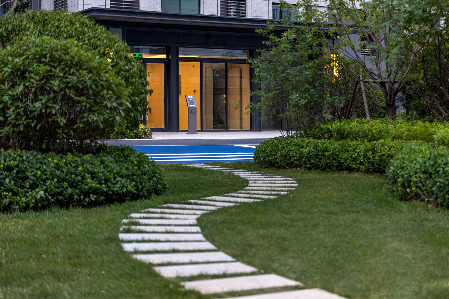 項(xiàng)目借鑒齊魯大地傳統(tǒng)園林建筑院落的對(duì)稱布局,營(yíng)造了一個(gè)中軸串聯(lián)的中庭景觀大花園,創(chuàng)造了嚴(yán)謹(jǐn)又不失活潑的環(huán)境氛圍。精心篩選的綠植,與建筑協(xié)調(diào)并具有層次感,灌木、喬木層層疊疊,公共空間掩映在綠蔭之間,豐富的景觀層次,削弱了建筑形體的厚重之感,增添了幾分輕盈、自由。