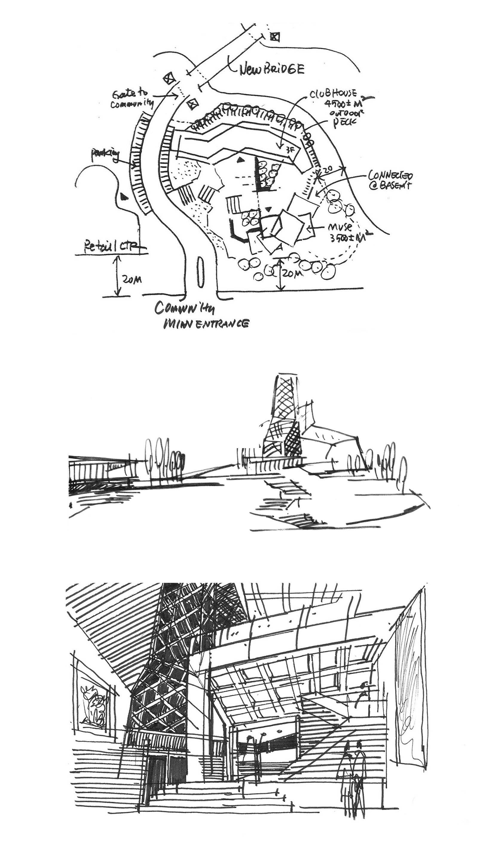 本地塊位于貴陽市長嶺南路以西,小灣河?xùn)|側(cè),周邊為規(guī)劃建設(shè)中心住宅區(qū)。項(xiàng)目布局上充分利用并尊重地形條件,結(jié)合起伏的場地現(xiàn)狀,處理建筑與城市道路、景觀人流之間的和諧平衡,給藝術(shù)館所要求的靜沁安逸的環(huán)境品質(zhì)創(chuàng)造了條件,并結(jié)合藝術(shù)本身特質(zhì),在設(shè)計(jì)中采用了較大膽的構(gòu)成主義思想,由內(nèi)而外地自由伸展、自由起伏穿插的形態(tài)、自由而富有激情的建筑三維空間,使其本身不僅是展示藝術(shù)創(chuàng)造的場所,更是一件藝術(shù)品。設(shè)計(jì)努力營造新穎、活潑的現(xiàn)代藝術(shù)館,其靈感源于自然狀態(tài)中一堆碎石的聯(lián)想,并將之打造成為長嶺南路一側(cè)新時(shí)代的地標(biāo)性建筑。