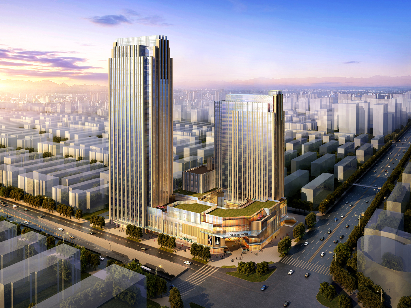 項(xiàng)目位于成都市成華區(qū),一環(huán)路與水碾河路交叉口。根據(jù)場地特點(diǎn),力求充分利用基地的自然條件,在臨一環(huán)路和水碾河路兩條主要市政道路一側(cè)設(shè)置商業(yè)區(qū)。辦公主入口位于北側(cè),緊鄰一環(huán)路,辦公建筑主要為南北朝向,確保良好的日照和通風(fēng)條件。酒店主入口設(shè)置在東南側(cè),鄰近水碾河路,環(huán)境鬧中取靜。酒店每層平面設(shè)計(jì)都能充分利用自然通風(fēng)與采光,并提供優(yōu)良的視野;酒店配套設(shè)施齊全,功能布局合理,交通流線緊湊高效。建筑采用和諧的色彩,高雅現(xiàn)代的設(shè)計(jì)風(fēng)格,既簡潔大方,又親切宜人。同時(shí),建筑師運(yùn)用經(jīng)典元素展現(xiàn)建筑作為歷史見證者所蘊(yùn)含的文化意義。