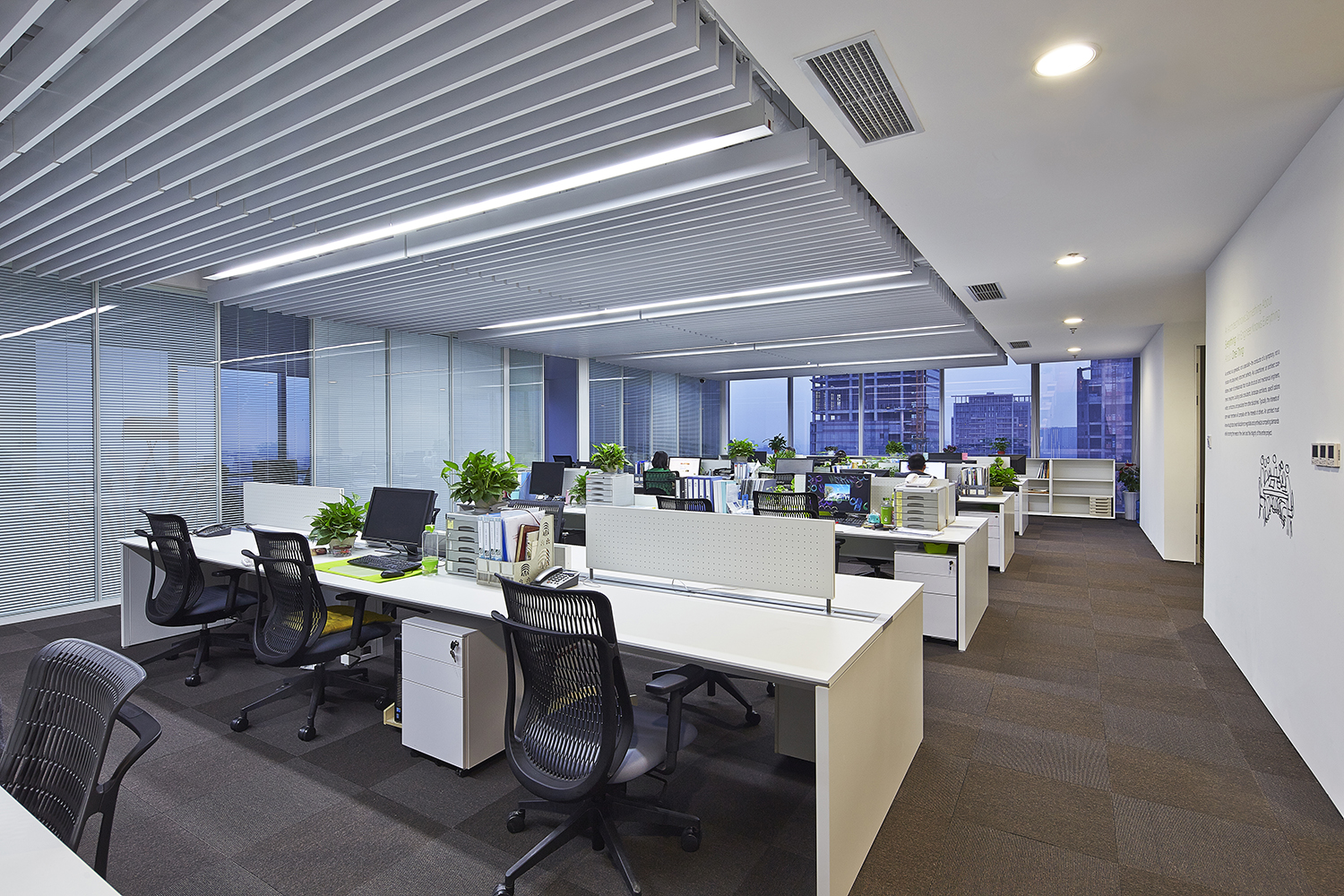 綠色:本案設計秉執(zhí)“綠色”環(huán)境概念,強調設計中人與環(huán)境的和諧關系。大量采用可回收材料,高架地板系統(tǒng)避免施工中的粉塵污染及濕作業(yè),與供應商共同研發(fā)“WORK STATION”(工作站)系統(tǒng),提供最佳的人體工程學解決方案。在工作區(qū)周圍設置大量磁力白板,降低能耗。呈現(xiàn)真正的“綠色”工作空間。