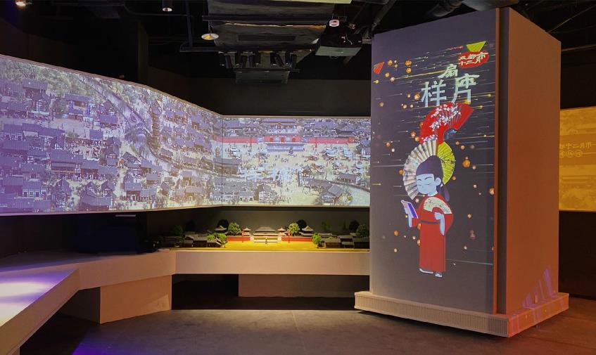 項(xiàng)目中山鼎設(shè)計(jì)了成都市十二月市博物館室內(nèi)主題展陳及戶外廣場互動場景,從唐代開始,成都每個(gè)月都會在當(dāng)時(shí)最繁華的大慈寺一帶,舉行類似于現(xiàn)在商品交易博覽會的集會,到了宋代,這種交易會形成了“十二月市”的固定叫法。