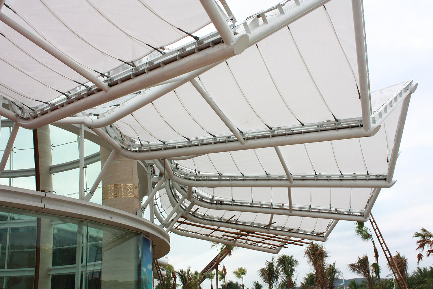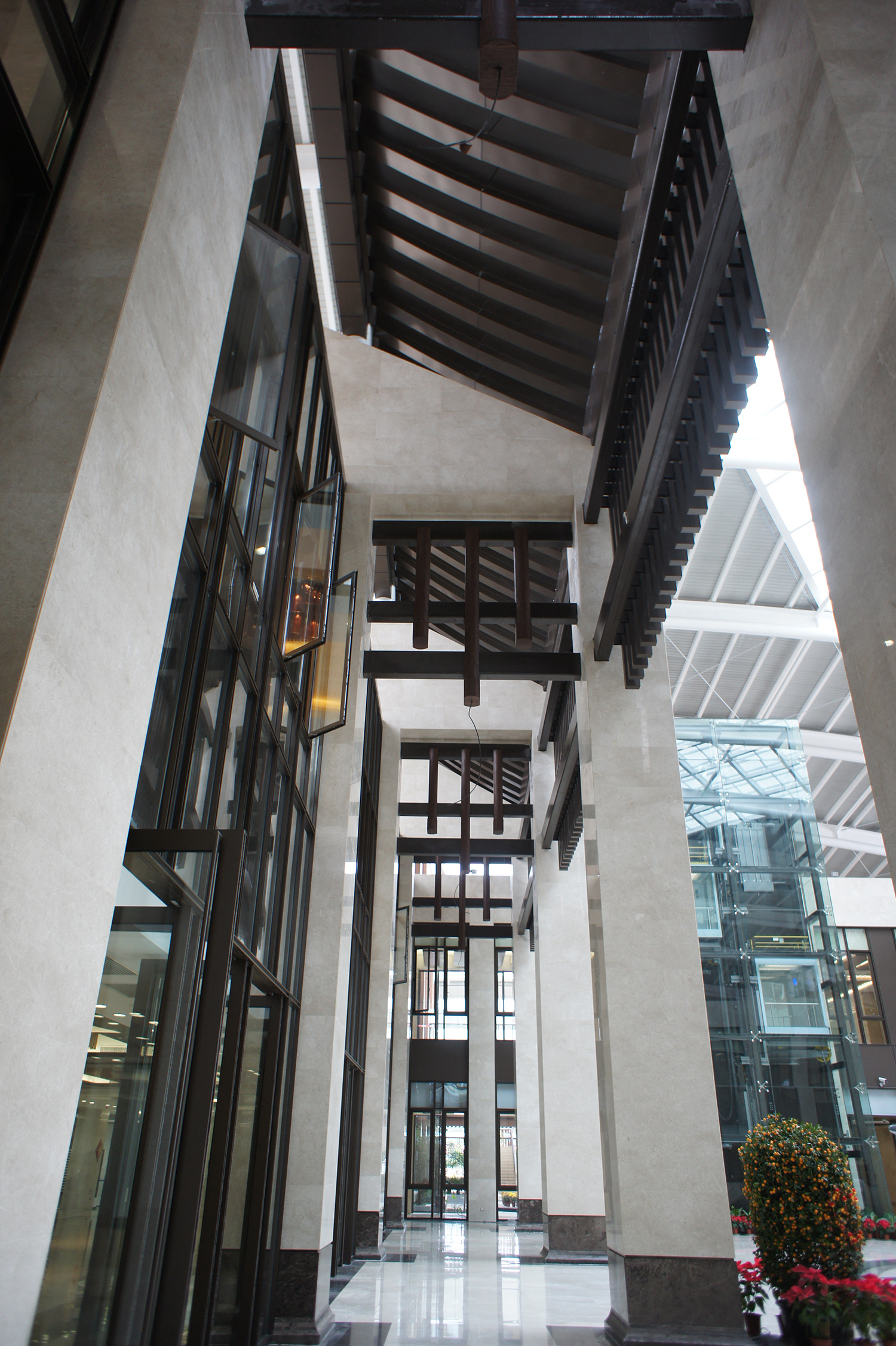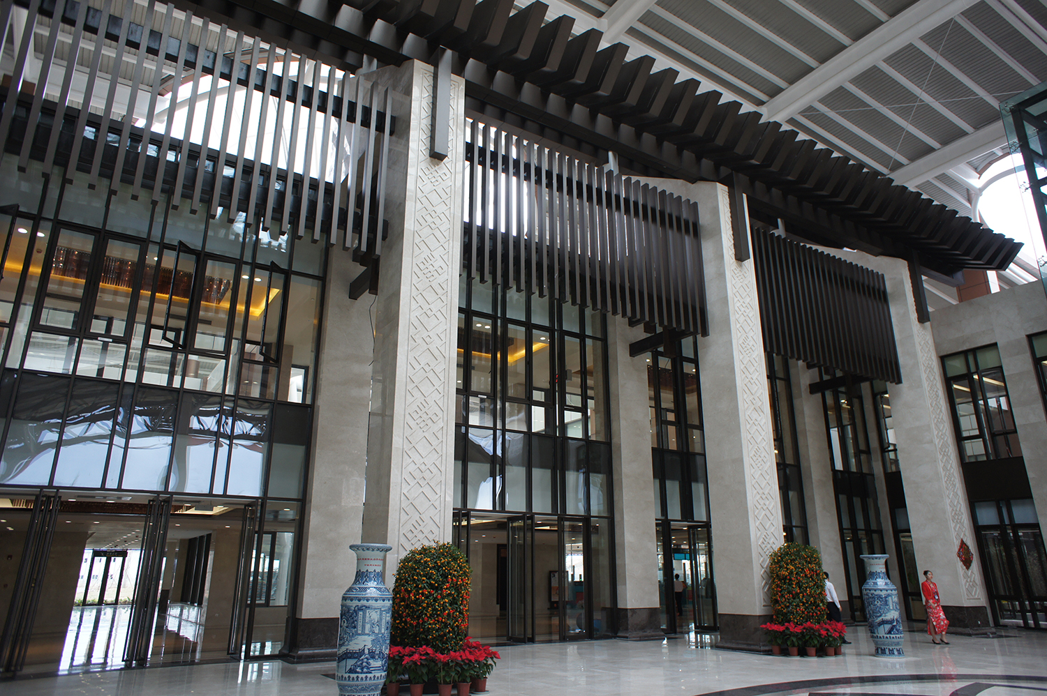 項目提出了“海韻椰風,心靈驛站”的設(shè)計主題。貴賓航站樓接待旅客的層次較高,且大多為中外政要或境外游客,是一個向中外旅客展示中國造園藝術(shù)的窗口。項目在尊重海南當?shù)匚幕瘍?nèi)涵及景觀特質(zhì)的前提下,借鑒了中國傳統(tǒng)的庭園造景手法,采用現(xiàn)代的空間營造模式,結(jié)合海南特有的硬質(zhì)造景元素(石頭、火山巖等)和各種軟質(zhì)植物品種,創(chuàng)造性地設(shè)計了一個精巧、幽靜、舒適,富有中國傳統(tǒng)造園意境,又具有海南特色的酒店度假風情式航站樓。