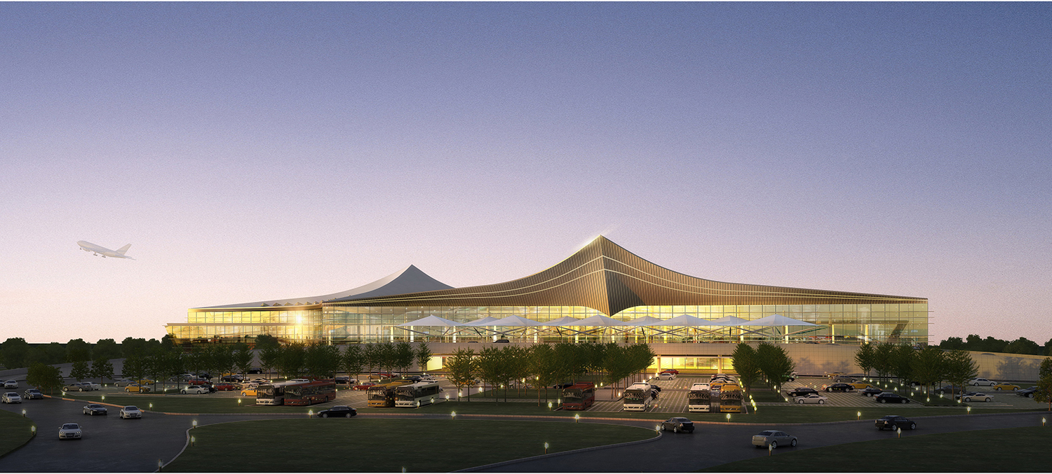 項目的設(shè)計理念是“雙雁呈祥”。衡陽雅稱“雁城”,“萬里衡陽雁,尋常到此回”的美景令人遐思無限。優(yōu)美的體態(tài),穩(wěn)健的身形,有序的隊列,持久的奮進(jìn)——大雁的種種特質(zhì)寓意著“雁城”衡陽令人神往的過去,生機(jī)勃勃的現(xiàn)在和充滿希望的未來。項目設(shè)計從現(xiàn)代化、標(biāo)志化、藝術(shù)化、生態(tài)化等角度全方位營造衡陽機(jī)場航站區(qū)之“雁城”印象。