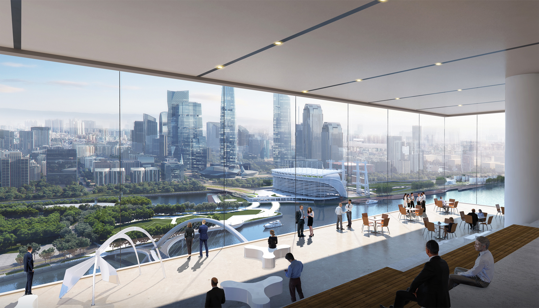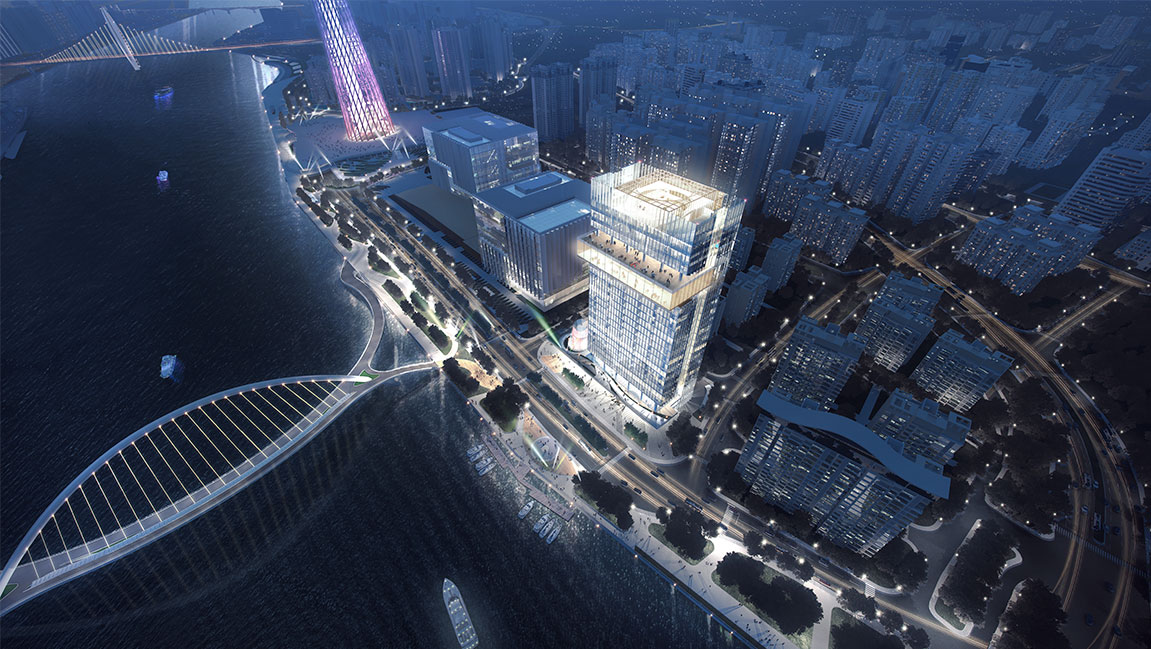 項(xiàng)目位于廣州市海珠區(qū),規(guī)劃上屬于傳媒創(chuàng)意產(chǎn)業(yè)區(qū),新城市中軸區(qū)。項(xiàng)目集辦公、會(huì)議、商業(yè)等多種功能于一體,互聯(lián)共享,彼此激發(fā),提升整體業(yè)態(tài)價(jià)值。設(shè)計(jì)打破了傳統(tǒng)的單一首層設(shè)置,創(chuàng)造性地塑造了六 “首層”空間,通過飛天梯、穿梭梯、企業(yè)專梯等,引導(dǎo)人流向上直達(dá)各首層,激活商業(yè)價(jià)值。
