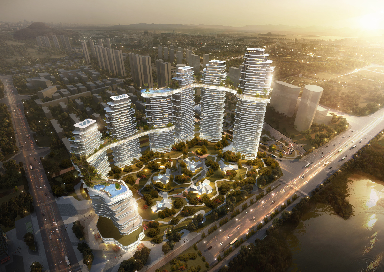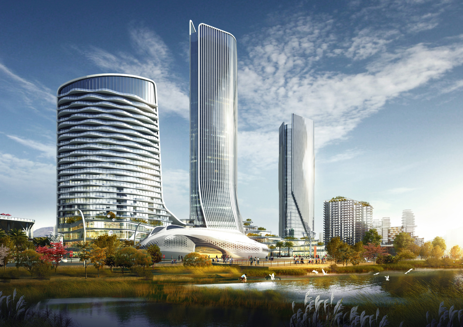 本項(xiàng)目獨(dú)特的融合商務(wù)、商業(yè)、高品質(zhì)居住、城市公園、精品教育,將使得這城市從清晨到深夜都能充滿著生意與朝氣。這些建筑將依次有組織的形成一系列的公共設(shè)施,提供了一個(gè)誘人的環(huán)境。通過(guò)洱海相連的戶外園林廣場(chǎng),能使人們有回歸大自然的感覺。對(duì)外開放的工作和生活空間將提供一個(gè)更好的生活工作體驗(yàn)。適當(dāng)重新利用現(xiàn)有的自然景觀不但增添了一種獨(dú)特的感覺,并創(chuàng)造一個(gè)與過(guò)去相結(jié)合的意境。