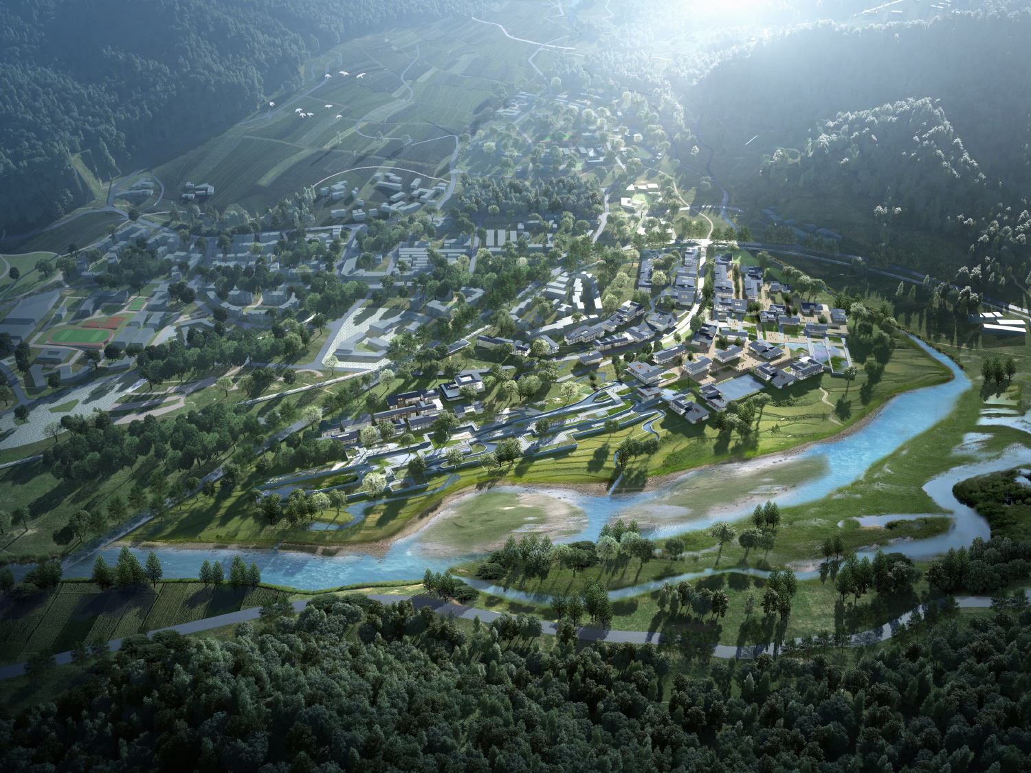 項(xiàng)目位于四川省西北部,龍門山腳下,距成都市區(qū) 30 公里,彭州城區(qū) 10 公里。湔江河谷是成都乃至全國都十分罕見的“高山河谷”,以“體驗(yàn)之路、靈動之水、自然之氣、生態(tài)之市、天人合一、發(fā)展永續(xù)” 為設(shè)計(jì)理念,以生態(tài)環(huán)境保護(hù)為前提,立足區(qū)域文化本底與山水地形格局,進(jìn)行本項(xiàng)目的生態(tài)環(huán)境修復(fù)、旅游基礎(chǔ)設(shè)施體系與旅游產(chǎn)業(yè)生態(tài)圈的構(gòu)建,輻射 860 平方公里的山地旅游聚集區(qū),打造雖由人作,宛若天成的“世界山地運(yùn)動天堂、山地旅游目的地”。