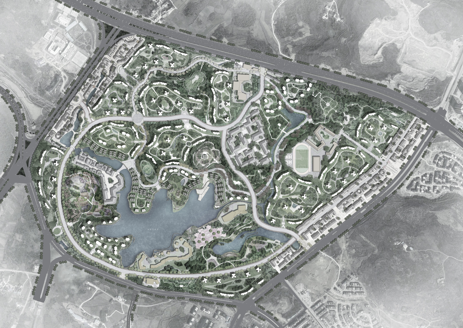 項(xiàng)目位于義龍新區(qū)地處貴州西南,交云南廣西兩省,是云貴高原向廣西丘陵的過渡地帶和珠江上游保護(hù)區(qū),是中國西南出海大通道上的重要節(jié)點(diǎn)區(qū)域和通往中國—東盟自由貿(mào)易區(qū)的前沿窗口及陣地。本項(xiàng)目充分利用內(nèi)部山體及水景資源,打造主題鮮明的社區(qū)環(huán)境,加強(qiáng)景觀之間的相互聯(lián)系,整體規(guī)劃形成“一心”、“三環(huán)”、“八軸”,覆蓋整個地塊,并且結(jié)合湖景資源,營造圍合式的規(guī)劃格局。