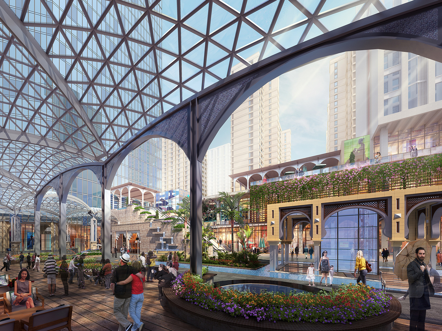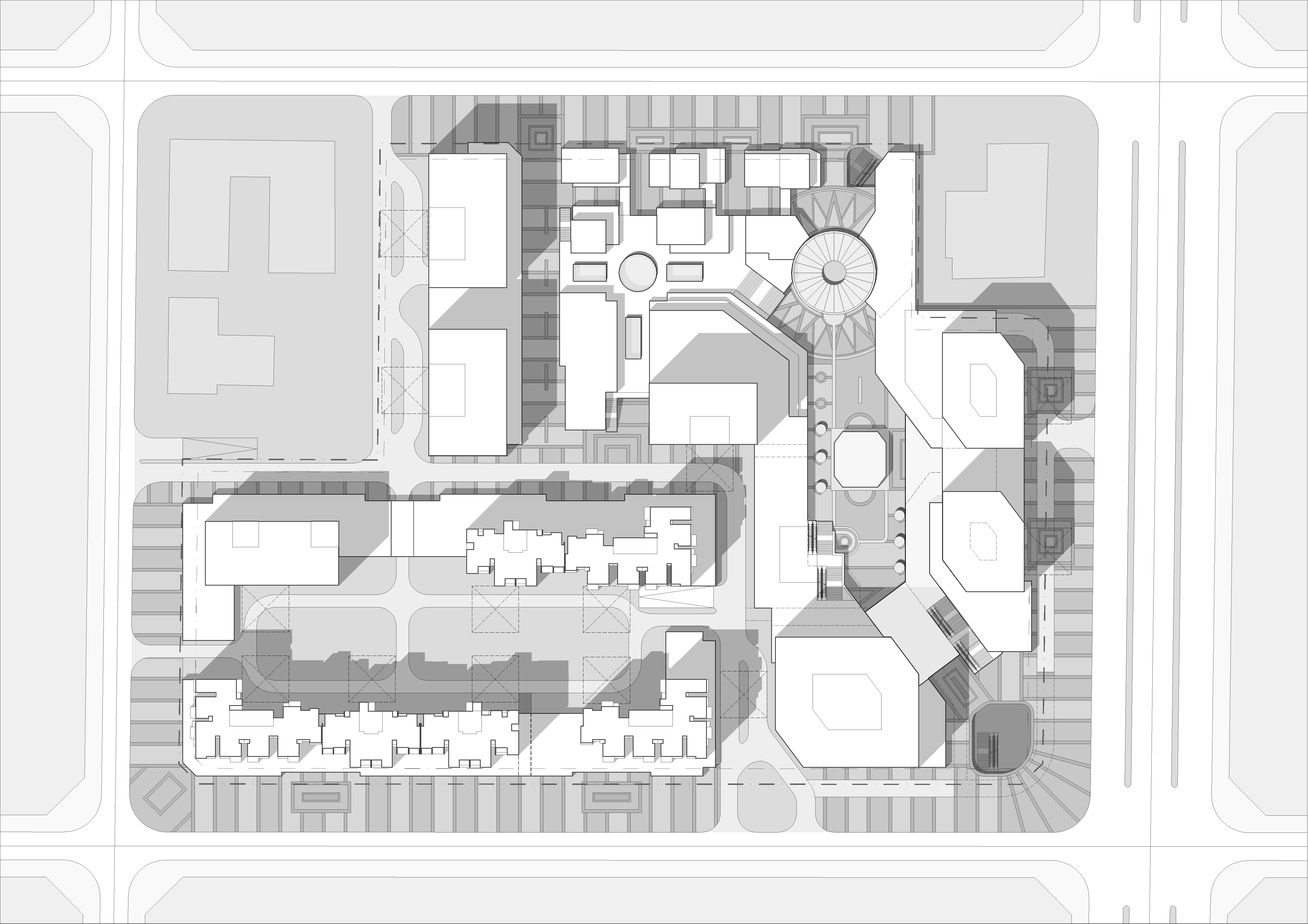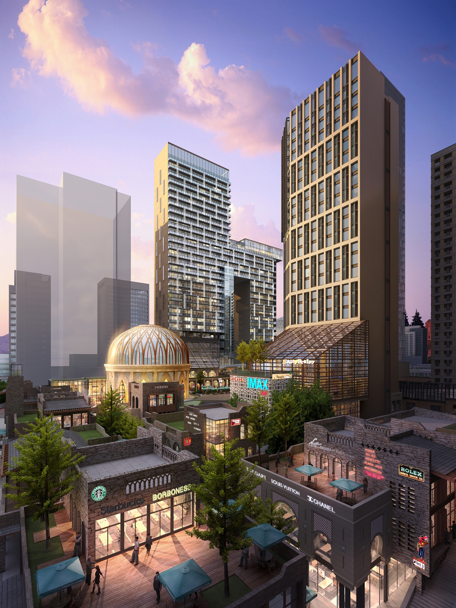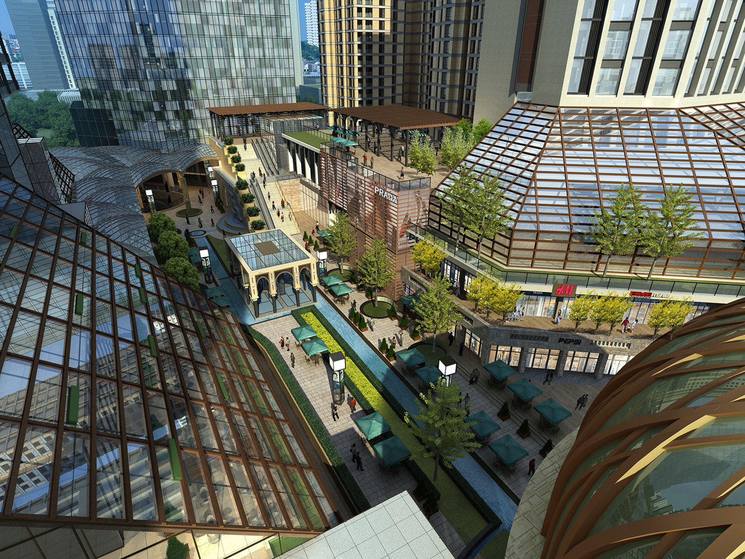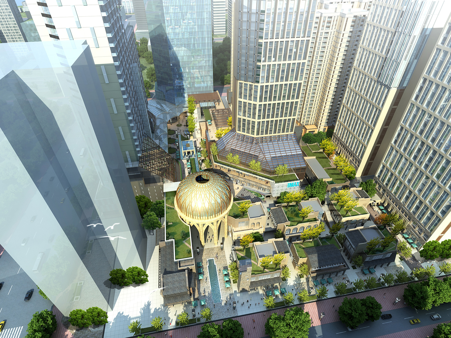 設(shè)計(jì)提取唐長(zhǎng)安絲路起點(diǎn)多文化交融的概念,還原長(zhǎng)安海納百川的集市文化,通過(guò)上城與下城的方式和體驗(yàn)式的現(xiàn)代商業(yè)模式結(jié)合,形成獨(dú)特的商業(yè)空間,將幾大主題即:絲路風(fēng)情金街、商業(yè)主圖公園、旅游文化消費(fèi)目的地的空中開放式城市客廳有機(jī)結(jié)合,創(chuàng)造全新的商業(yè)體驗(yàn)空間。同時(shí)在項(xiàng)目?jī)?nèi)設(shè)置 150 米超高層,由高端甲級(jí)辦公與豪華五星級(jí)酒店組成,成為項(xiàng)目的制高點(diǎn)與形象展示,為整個(gè)片區(qū)帶來(lái)最高端物業(yè)。隨著項(xiàng)目的深入設(shè)計(jì),包括景觀、雕塑、室內(nèi)空間的交互,都在進(jìn)行深入的思考,力圖為古城西安帶來(lái)一個(gè)精彩的建筑作品,一個(gè)人人樂(lè)在其中的地標(biāo)建筑。