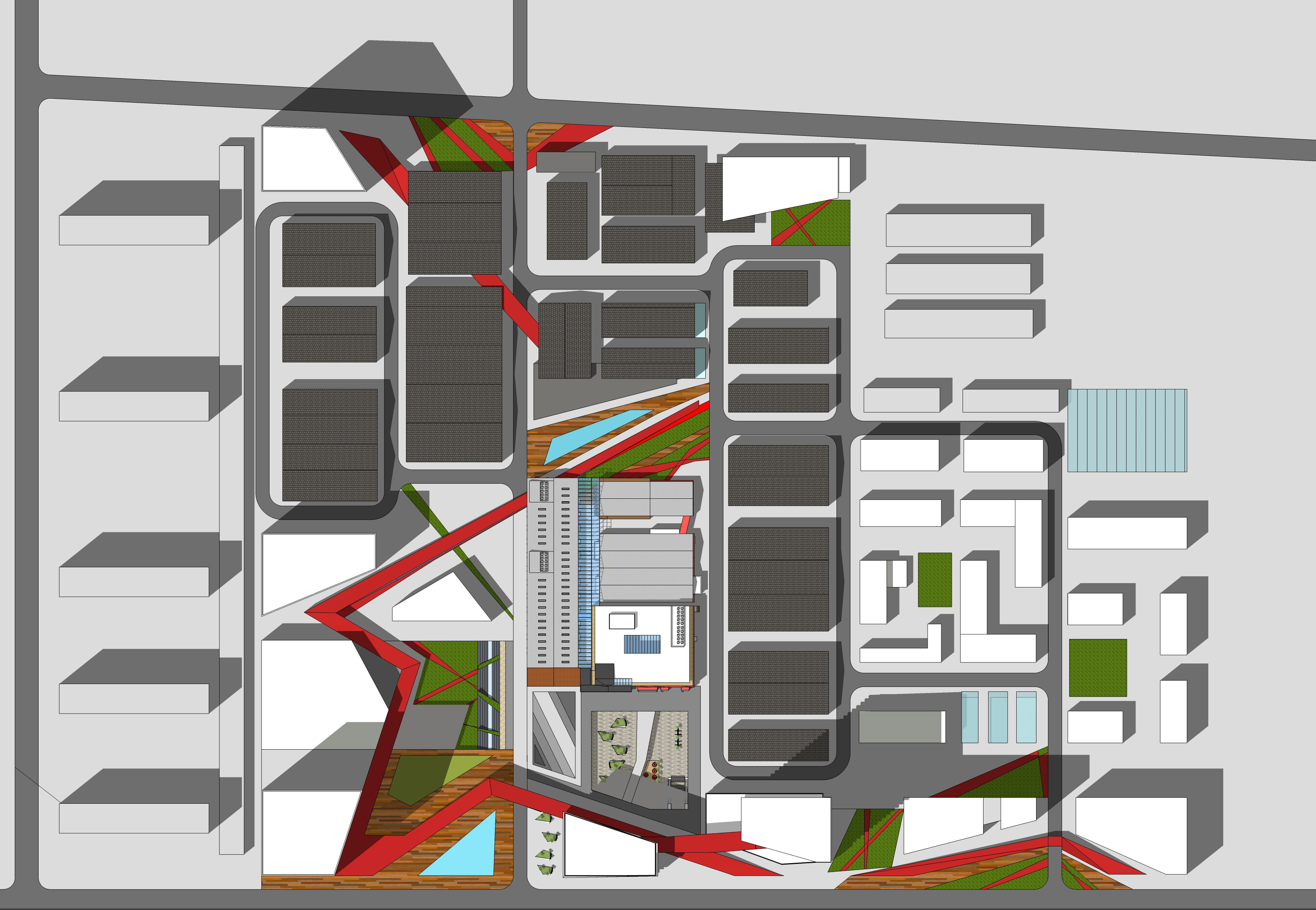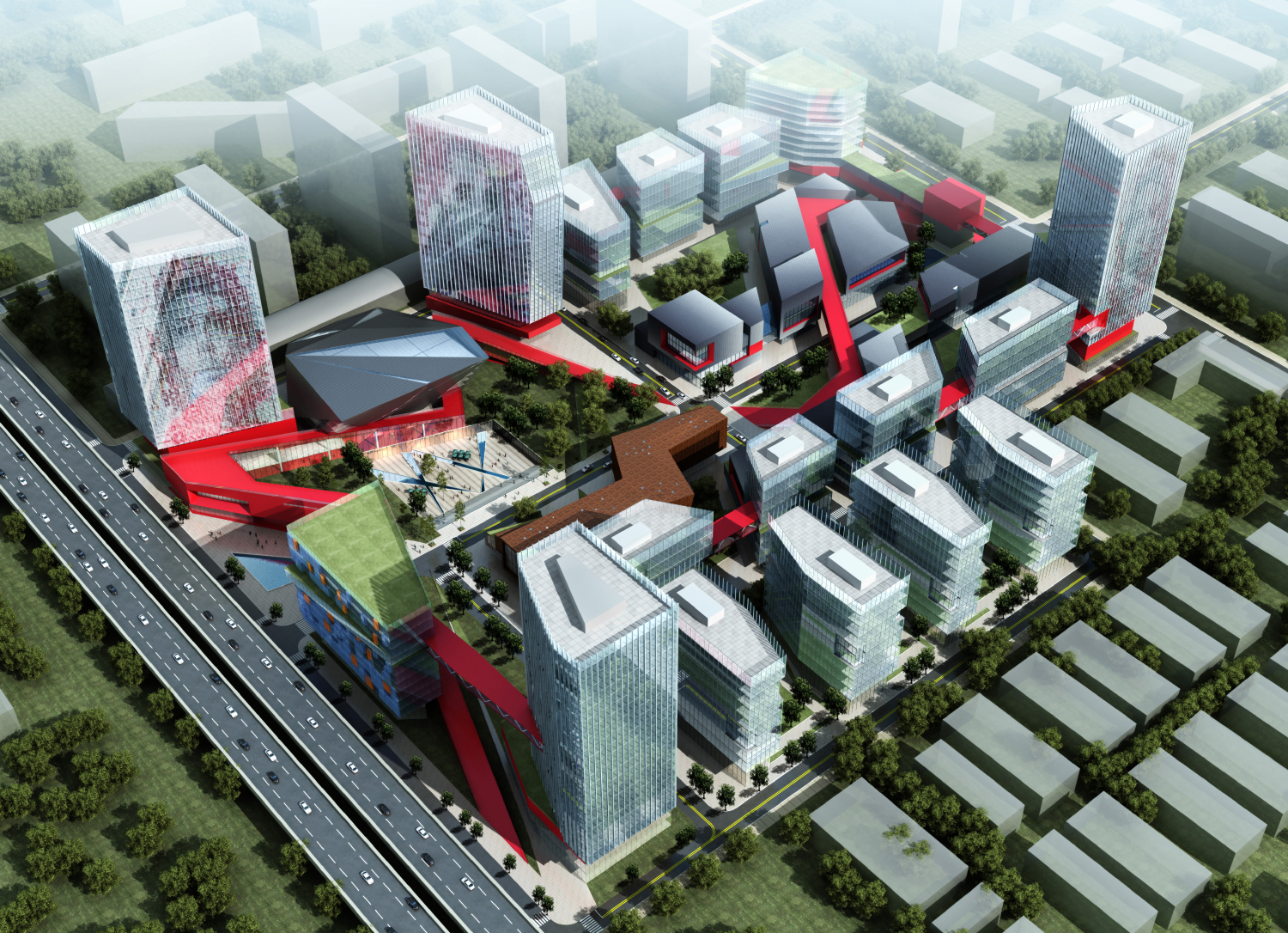 本項(xiàng)目位于北京朝陽區(qū)競園文化創(chuàng)意產(chǎn)業(yè)園內(nèi),總占地面積151,848平方米,建成后建筑面積將達(dá)到375,220平方米,其中地上建筑面積300,220平方米,地下建筑面積75,000平方米。項(xiàng)目的規(guī)劃目標(biāo)是將該園區(qū)打造為一個(gè)國際影像產(chǎn)業(yè)集聚區(qū)和服務(wù)平臺(tái),構(gòu)筑以文創(chuàng)為核心,并附有多遠(yuǎn)選擇的產(chǎn)業(yè)格局,形成工作,生活,服務(wù)功能無縫銜接的自我完備的獨(dú)立循環(huán)生態(tài)系統(tǒng)。項(xiàng)目內(nèi)有大中小型企業(yè)辦公,商業(yè)街區(qū),展示中心,配套服務(wù)等功能。老園區(qū)現(xiàn)狀建筑陳舊,景觀和道路系統(tǒng)混亂。本次設(shè)計(jì)將對(duì)該園區(qū)進(jìn)行全面的升級(jí)改造,重新規(guī)劃內(nèi)部交通組織,對(duì)景觀進(jìn)行精細(xì)化設(shè)計(jì),并且對(duì)圍墻及入口大門進(jìn)行了全面改造,力求打造一個(gè)全新形象的文創(chuàng)產(chǎn)業(yè)園。