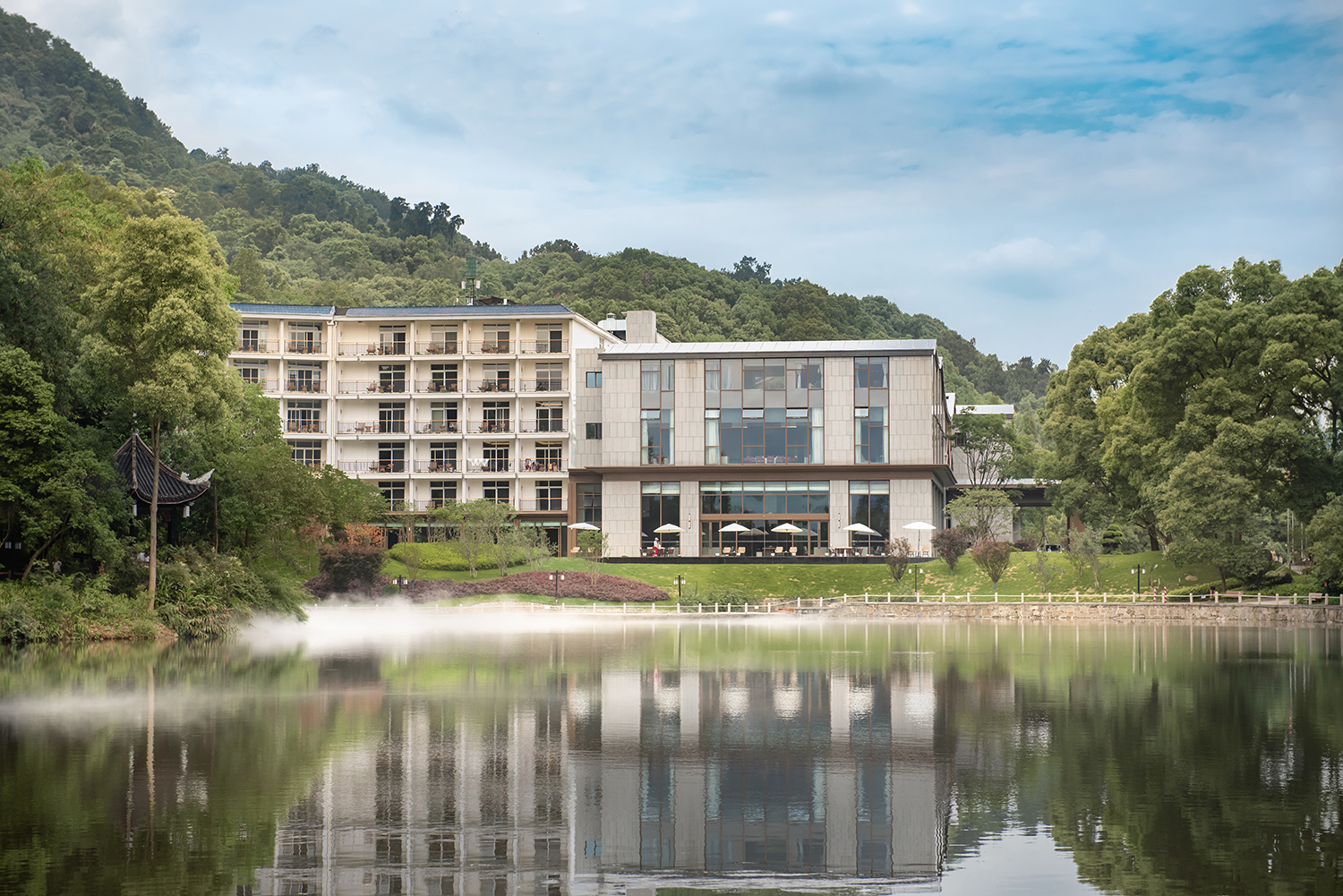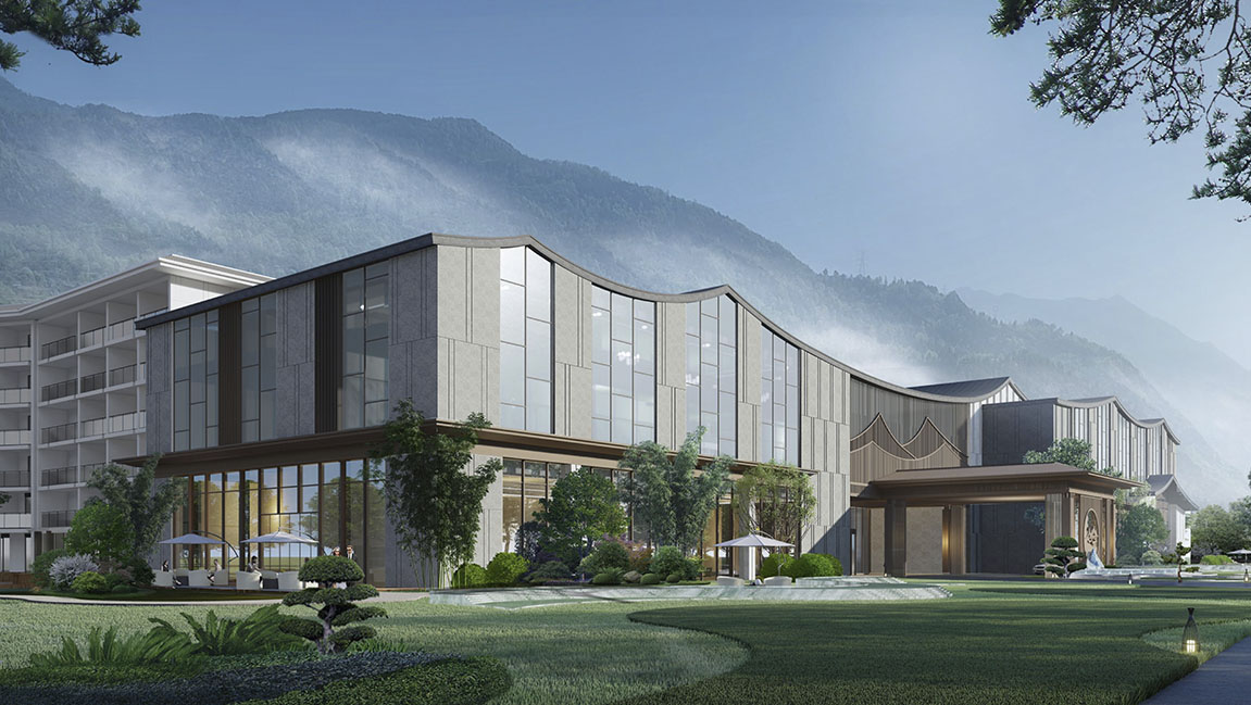 本項(xiàng)目完成室內(nèi)空間及功能布局重構(gòu),完善建筑功能。建筑立面造型升級,風(fēng)格新穎,力求特色。重塑入口大堂空間提升整體品質(zhì),解決客房區(qū)域的采光問題。優(yōu)化環(huán)境品質(zhì),打造優(yōu)雅舒適的度假氛圍。